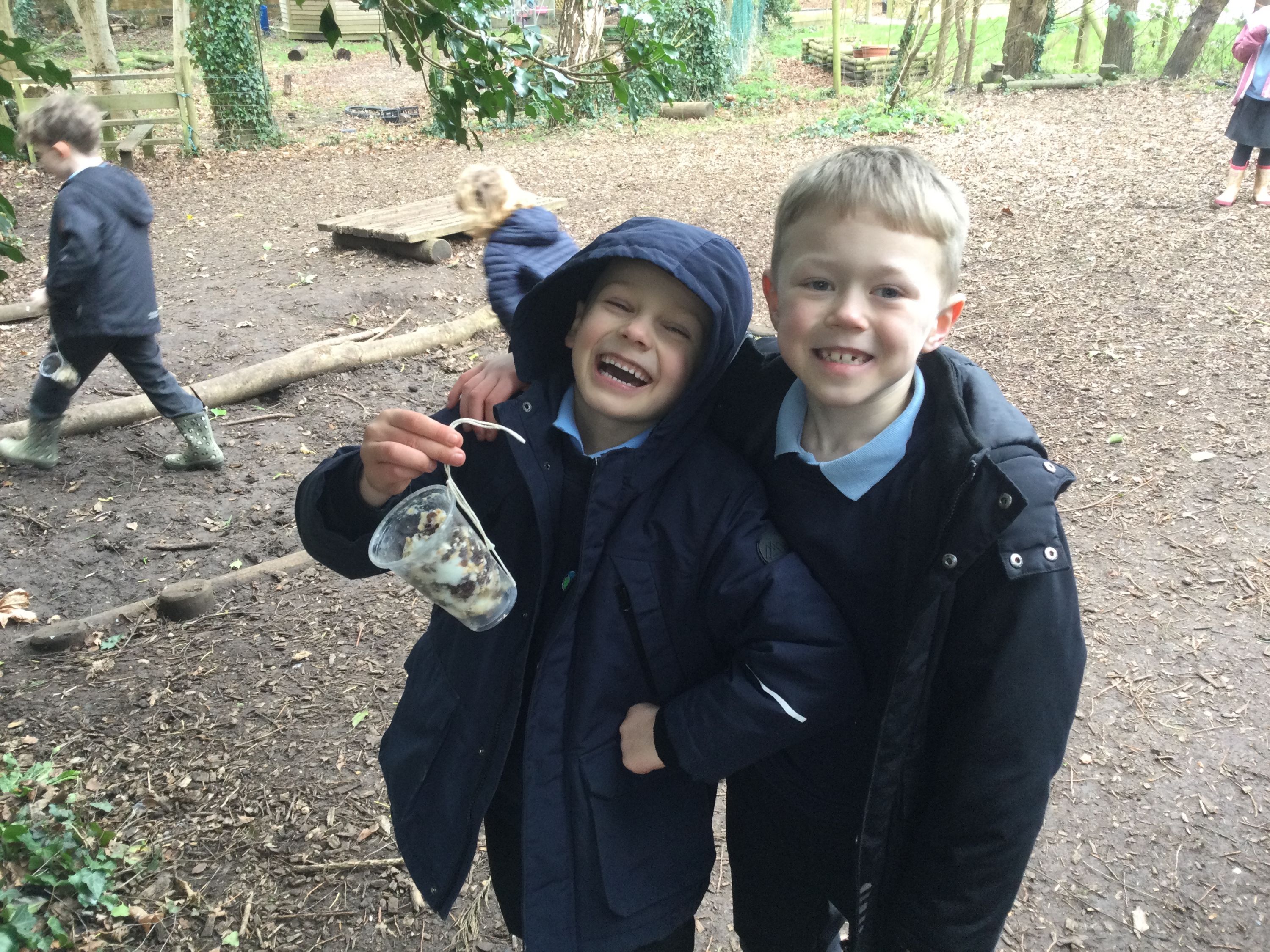 We made bird feeders in Forest School, and took part in the Big Garden Birdwatch.