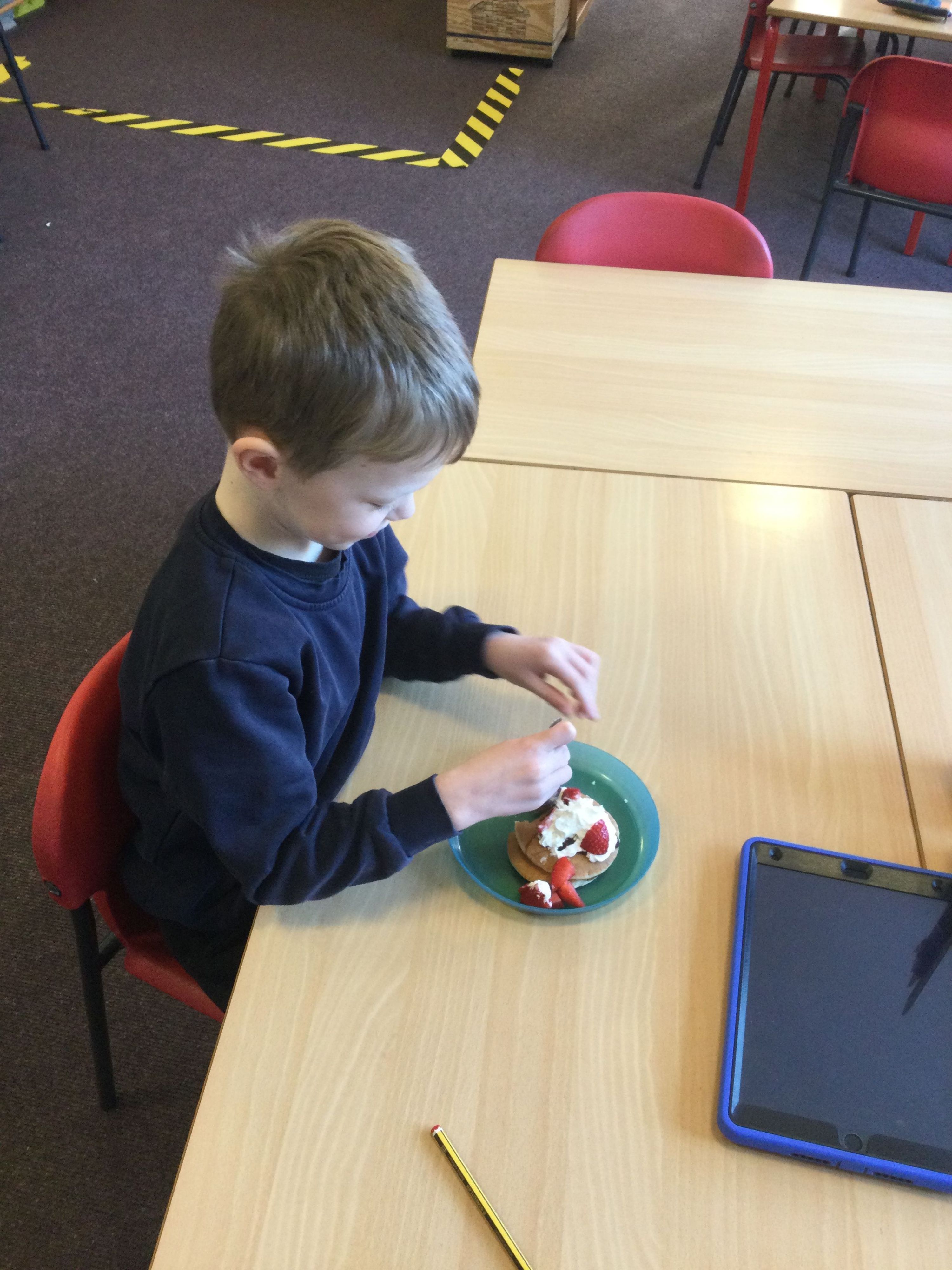 On Shrove Tuesday we made our own delicious pancake snacks (and even washed up afterwards).